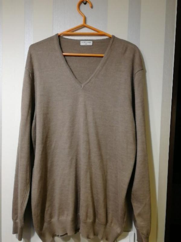 Джемпер розмір вказано (larse) великий. Склад 100 % меринос. Виробництво Румунія. Плечі 50, рукав 66, ширина-55, довжина 74.