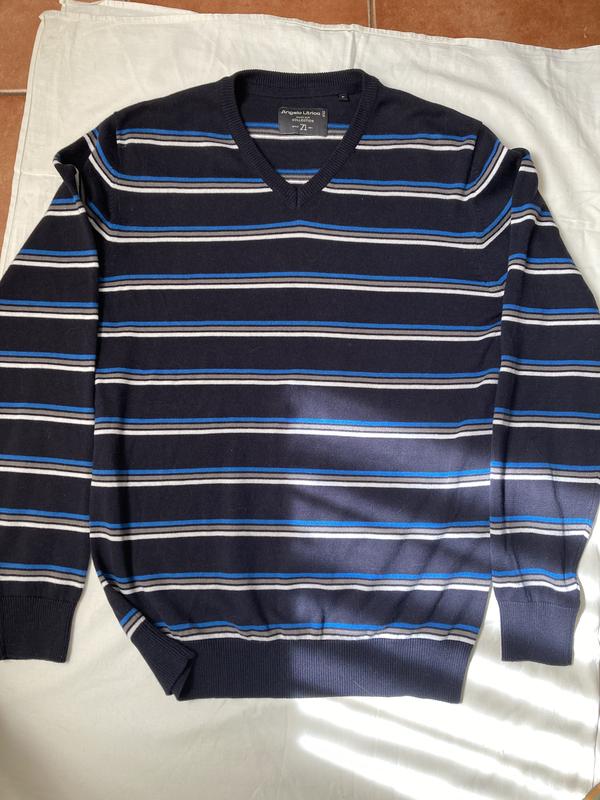Джемпер чоловічий темно-синій в смужку з v-образним вирізом, очень яскравий.