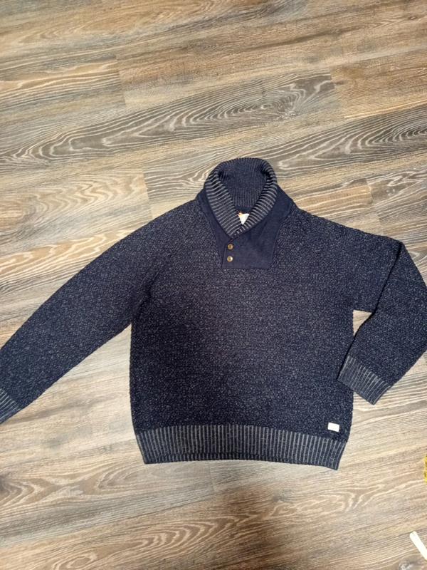 40%вовна 23%котон 22%акрил Теплий светр темно синього коляру , оригинальна горловина. довжина70 см довжина рукава від горловини 85см пог 58 см-63 см по низу 55 см- 59 см