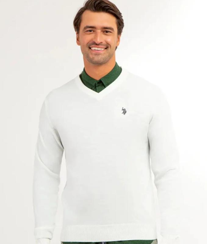 Белый джемпер Henselite Плотная машинная вязка Модель может быть и для дам По бирке размер 40 100 % : акрил Пог 56 тянется до 62 Рукав реглан, от горловины 77 см длина 62 см
