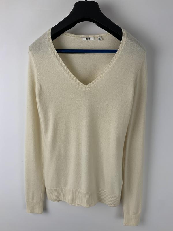 Чоловічий кашеміровий джемпер молочного кольору на манжетах uniqlo розмір xs