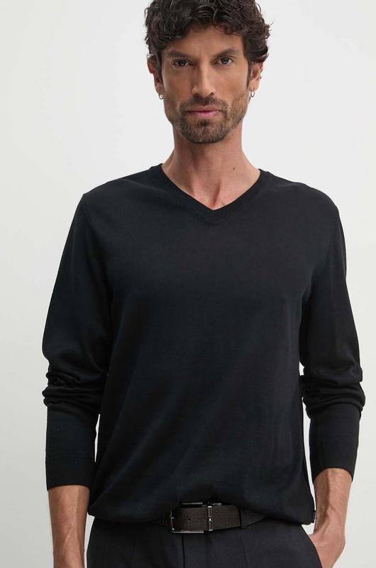 Вовняний джемпер светр шерсть мериноса чорна кофта