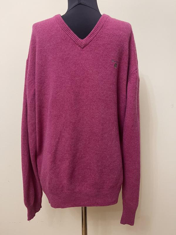 Чоловічий вовняний джемпер Gant рожевого кольору. Розмір XL. Плечі 54 см, ПОГ 62 см, довжина 71 см, рукав від горловини 84 см, ширина рукава 22 см. Стан нового, без дефектів.