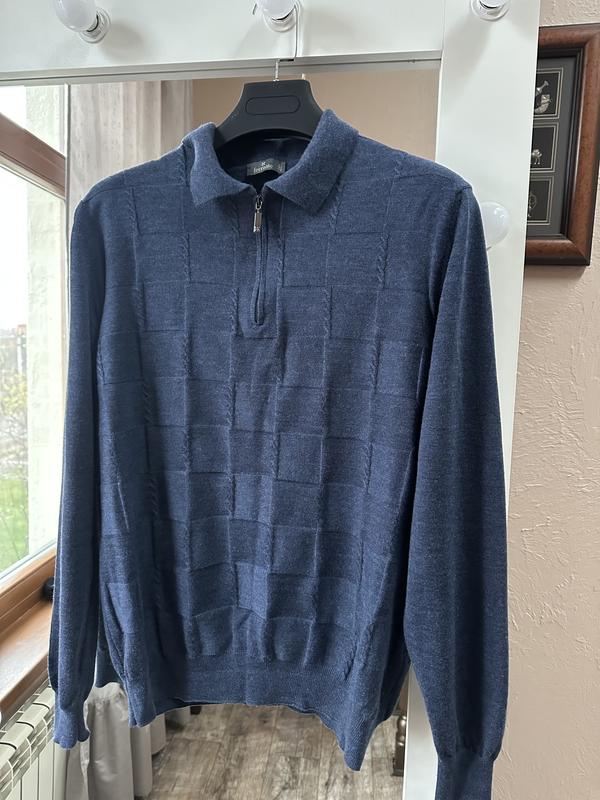 Джемпер в состоянии нового. Шерсть мериноса. Покупался дорого. Вещей много не носится многое. Производство Италия. Замеры Ширина под рукавами 56, тянется до 62 Длина по спинке 66 Длина рукава от воротника 81 Отдельно плечо 16 Ширина плеч по спинке 44 Темно синий. Не колется. Идеальный