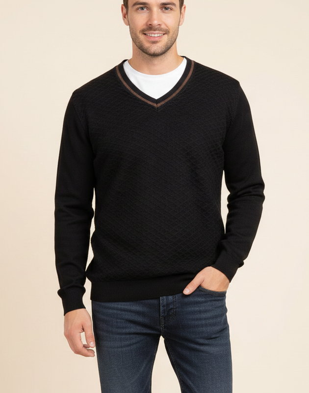 Підкресліть свій неперевершений смак з чоловічим джемпером від всесвітньо відомого люксового дому Gucci. Дизайн: Передня частина виконана з фактурного вовняного трикотажу з детальним візерунком у вигляді ромбів, що додає об'єму та елегантності. Спина та рукави — гладкі. Культовий акцент: V-подібний виріз горловини оздоблений фірмовою червоно-зеленою смужкою Gucci (Web), що миттєво вказує на приналежність до люксового бренду. Матеріал: М'яка та приємна до тіла вовна. Джемпер теплий, ідеально підходить для демісезону та зими. Колір: Глибокий чорний. Стан та нюанси: вінтаж. ⚠️ Важливо: Внутрішня етикетка зі складом та інструкцією по догляду зрізана (основна бірка на шиї на місці). Розмір: На бірці вказано XXL, але орієнтуйтеся, будь ласка, на виміри (може підійти на XL або XXL залежно від бажаної посадки). 📋 Детальні виміри: Довжина по спині: 79 см Ширина під пахвами (напівобхват грудей): 62 см Плечі: 48 см Довжина рукава від плеча: 70 см Характеристики: Бренд: Gucci Країна виробник: Італія Стиль: Casual / Classic / Пуловер Виріз: V-подібний Силует: Звичайний (Regular fit)