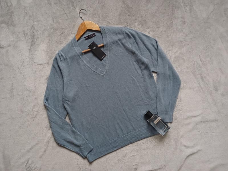 Чоловічій джемпер бренду Marks & Spencer. Розмір M. Колір блакитний. Склад: 100% акріл. Дуже м'який та приємний на дотик. - Плечі - 35 см - ПОГ - 53 см - Рукав - 62 см - Довжина - 64 см