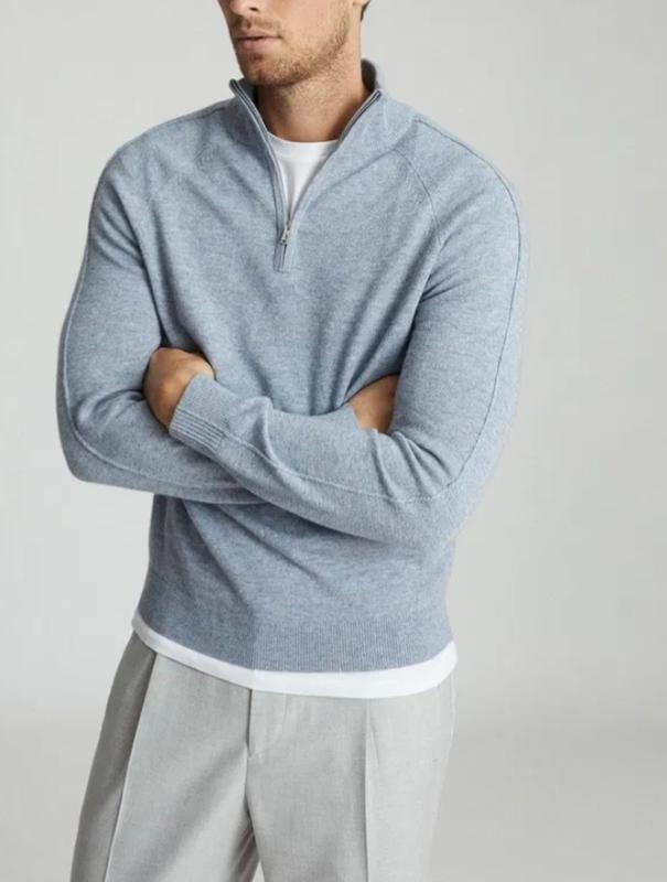 чудовий чоловічий джемпер Reiss блакитного коліру на змійці розмір ХL стан нового склад 47% вовна 36% віскоза 12% поліамід 5% кашемір Заміри довжина до низу 69 рукав реглан від ворота 78 під пахвами 53