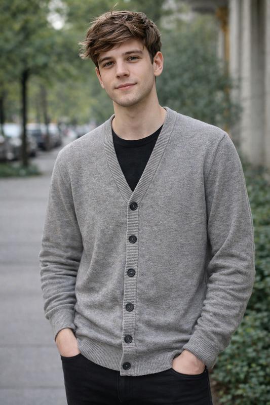 Чоловічий джемпер в сірому кольорі на ґудзиках, від бренду Primark, в розмірі L,тканина віскоза та поліестер.