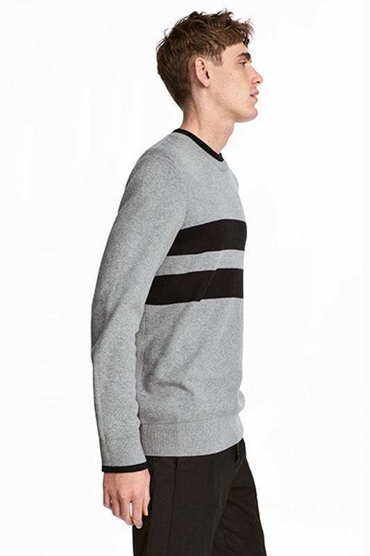 № 0497926006 Мірки: плечі 46 см, пог 52 см, рукав 66 см, довжина 74 см Джемпер з довгим рукавом з м'якої суміші мода і бавовни. Рельєфна обв'язка по горловині, низу рукавів і нижньому краю. Колір: сірий меланж/чорні смуги