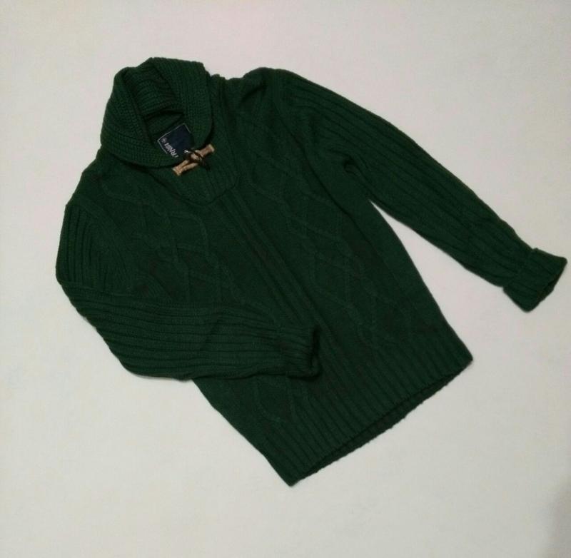 темно - зелений джемпер з гудзиком на горловині, розмір L, акрилова пряжа