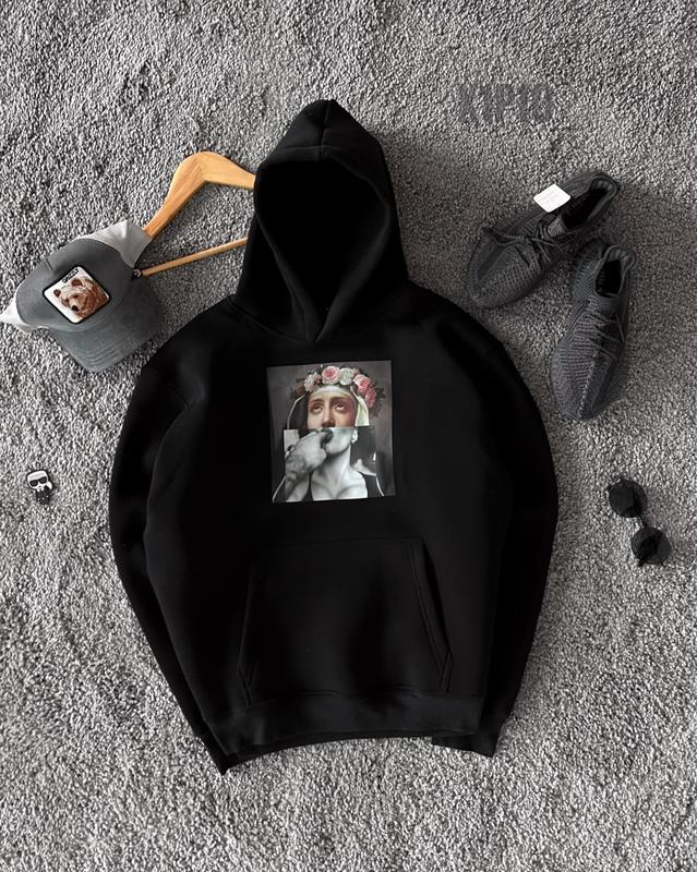 Чоловіча худі з принтом / теплі худі для чоловіків на флісі