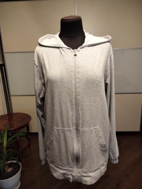 Худі світло сірого кольору тканина тонка для теплої погоди , склад бавовна 95%, еластан 5% . Довжина72 см , пог 62 см , плечі 52 см , рукав 67 см , низ 59 см .