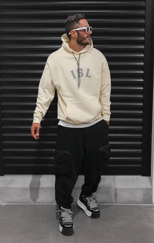 Чоловіча оверсайз толстовка молочна / базові класичні худі на осінь - зиму