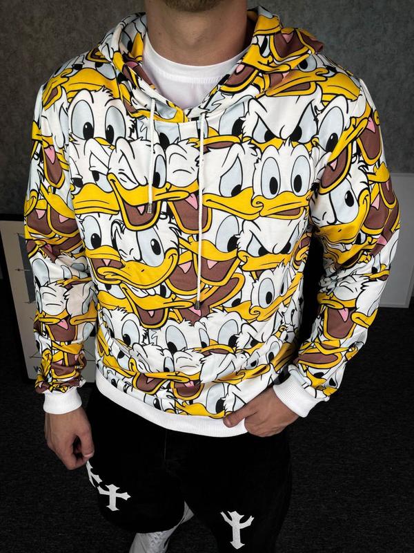 Біло жовте чоловіче худі з принтом мультики ◼️Розміри S-XL ◼️Артикул 6-185 💌Менеджер допоможе підібрати вам розмір 📷Доп фото або відео менеджер вам скине 📦Відправка в той же день накладеним платежом 📩Щоб замовити напишіть нам у Дірект