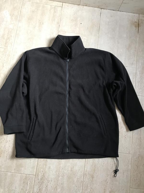 Черная флисовая кофта. Длина 75см, рукава 57см, ПОгруди 71см, плечи 60см.