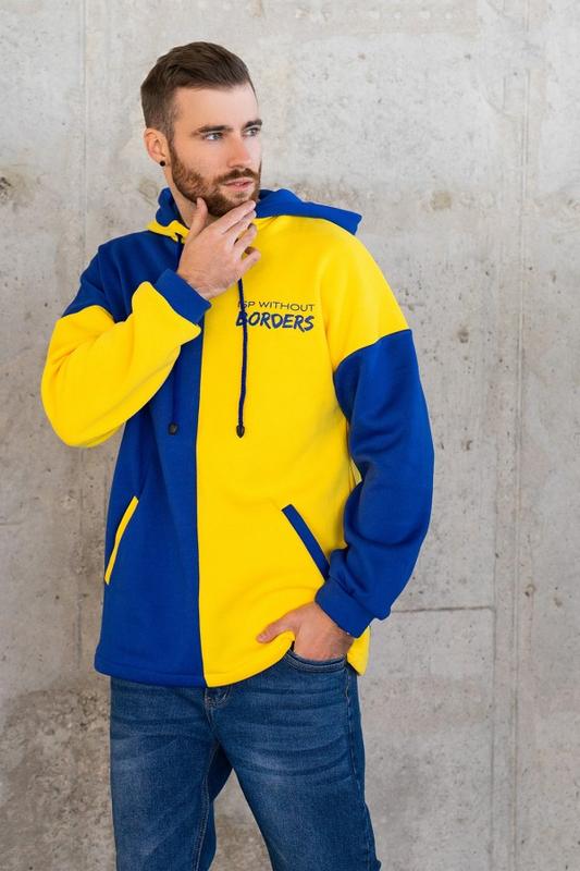 Жовто-синя утеплена толстовка з подвійним капюшоном