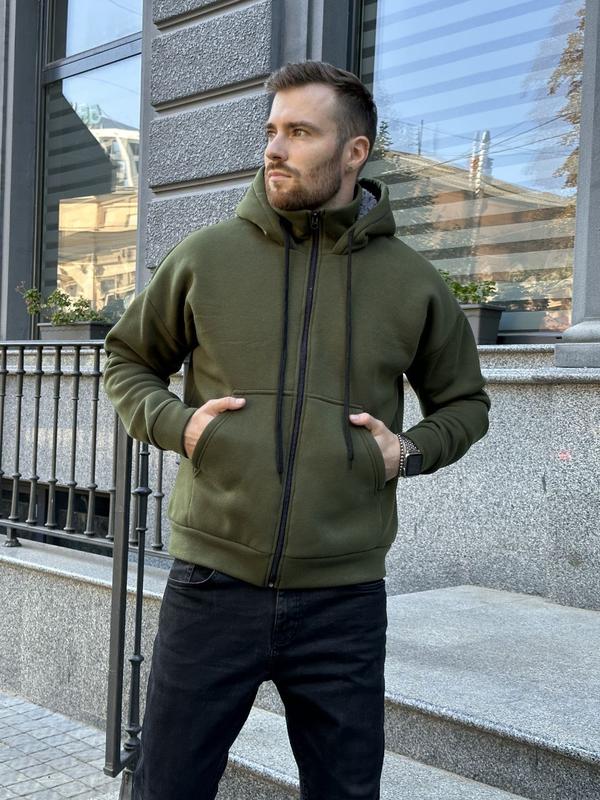 №500 Кофта худи Чоловіча. На підкладці з теди На блискавці та кишеню кенгуру, З капюшоном та коміром. Шнурок на капюшоні Тканина тринитка на флісі Хорошої якості. Підкладка сірого кольору Хутро Теді Колір: Чорний, Хакі, Темно-Синій. Норма Р 42-44, 46-48. Батал. Р 50-52, 54-56 🔥Ціна 860 грн. Тринитка Склад тканини Бавовна 65% Поліетр 30% Елостан 5% Розмірна сітка. Норма. 42-44. Об г 59см Об т 52см Довжина кофти від капюшона 66см. Довжина рукава від капюшона 80см 46-48. Об г 63см Об т 56см Довжина кофти 68см Довжина рукава 80см Батал. 50-52. Об г 67см Об т 60см Довжина кофти 70см Довжина рукава 83см 54-56. Об г 71см Об т 64см Довжина кофти 72см Довжина рукава 85см.