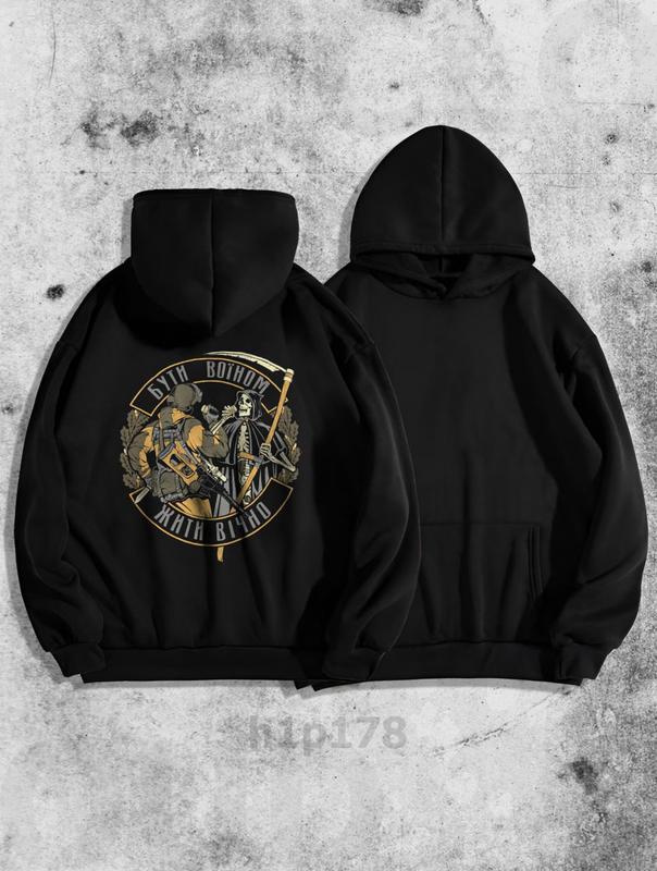 Худи трехнитка начес черный h1p178 ▪️Размеры: S, M, L, XL, XXL ▪️Карман кенгуру ▪️Принт: качественная печать Цена: 1349 грн