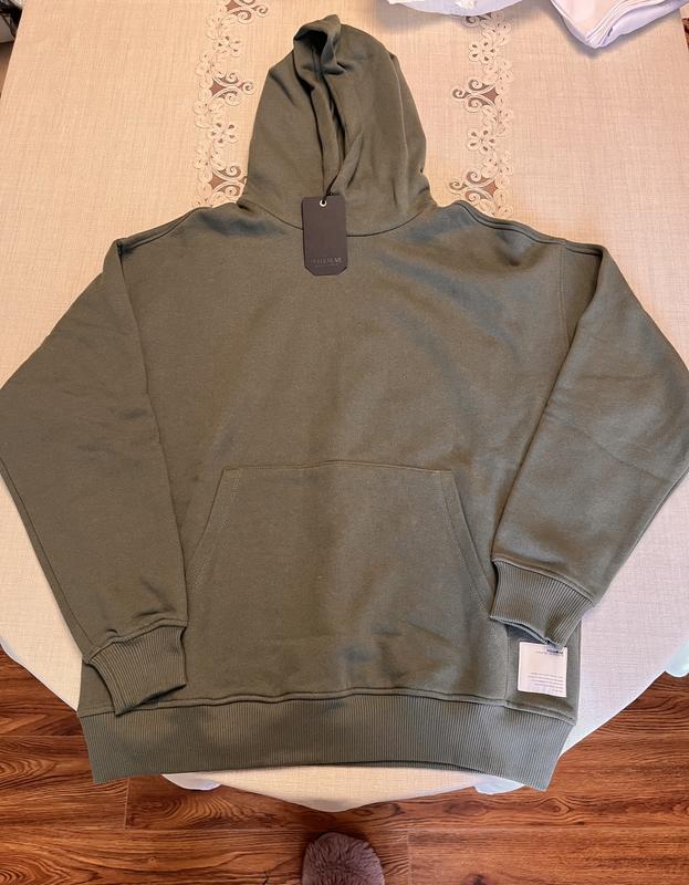 Худі кольору Хакі , по центру є суцільна велика кишеня , з капюшоном , підкладка з утепленням