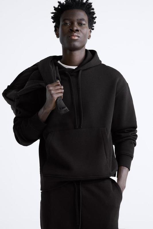 Худі базовий на флісі чорний з капюшоном толстовка s m l zara 0761/460