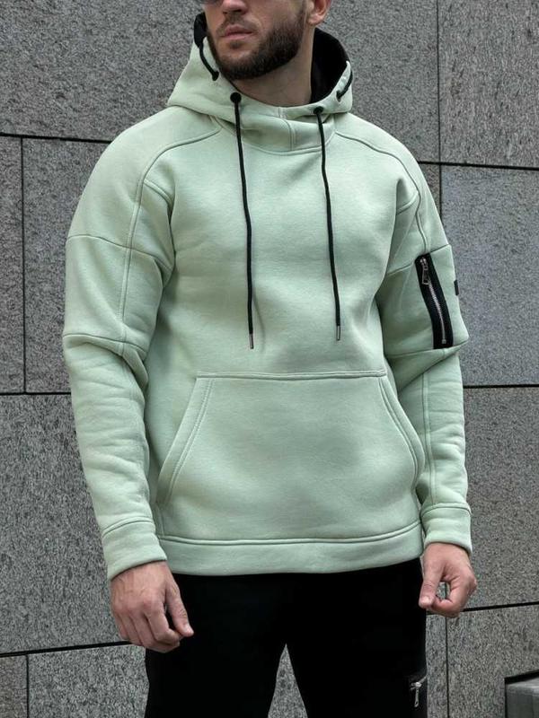 Зимове чоловіче тепле худі з начосом м'ята зелене