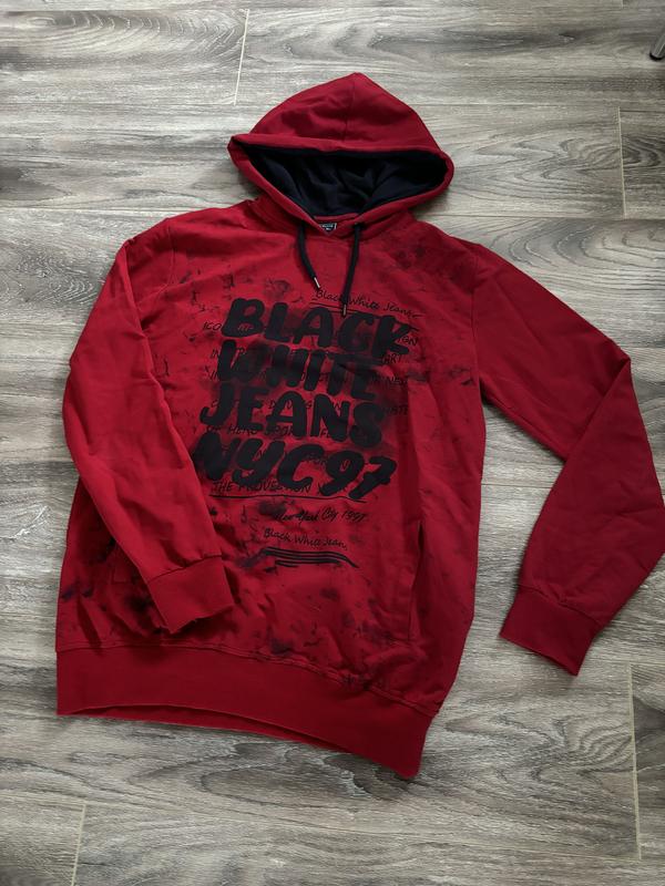 Худі двухнитка без утеплення, капюшон подвійний Колір темний червоний, гарна якість Розмір вказаний XXL, але краще буде на XL ОГ 54х2см Рукав від шиї 75см Довжина по спинці 76см Стан нового