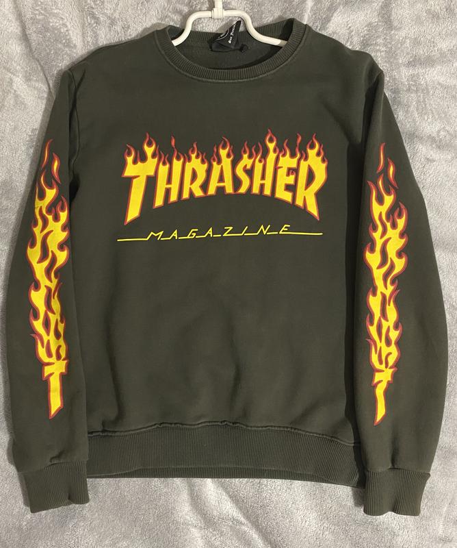 Світшот в розмірі с, зелений колір, принт в ідеальному стані. Також є вогонь на рукавах