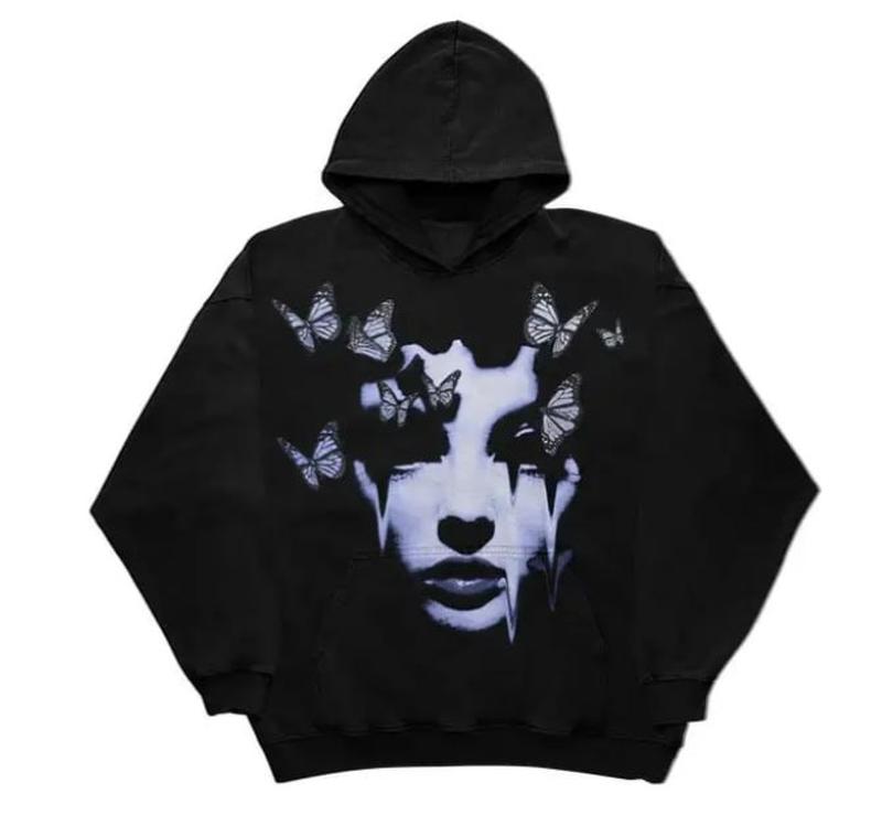 Худі в стилі Y2K Є ще інші варіанти! Вільна посадка забезпечує комфорт, а унікальний дизайн додає образу мистецької атмосфери. Ідеально для тих, хто цінує стиль із характером. ▪️ Щільний трикотаж ▪️ Унісекс фасон ▪️ Чорний колір Деталі: - Матеріал: якісна петля - Принт: високоякісний термодрук - Кишеня-кенгуру - Капюшон зі шнурком - Манжети на рукавах і низ худи - рібана - Розміри: ХS–XXL; - Склад: 90% бавовна / 10% еластан; Арт.rog