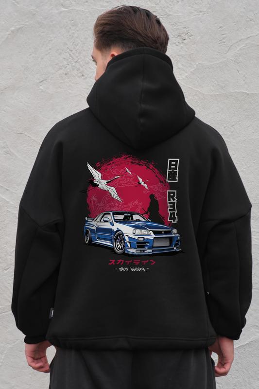 Чоловіче оверсайз худі толстовка на флісі з капюшоном та принтом without skyline black