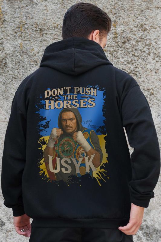 Мужское утепленное зип худи на флисе зипер с принтом dont push the horse without kane blac...