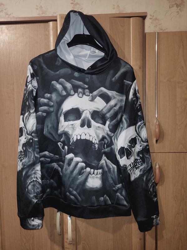 До вашої уваги класне чоловіче худі з прикольним принтом черепа на розмір xl в гарному стані. Тканина поліестр.Заміри груди 60 довжина 73 пускав від горловини 84