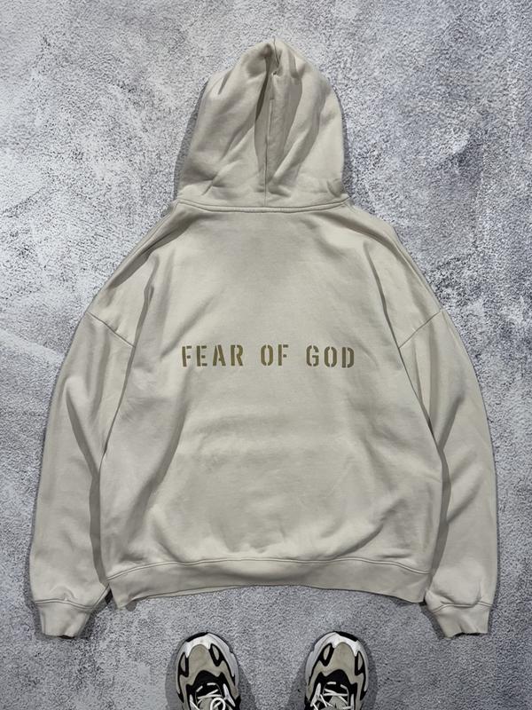 Оригінальне худі fear of god essentials кофта светр бежевий молочний з логотипом чоловічий...