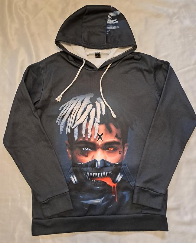 Худи XXXTentacion Revenge на флисе. Цвет черный с принтом на груди и на спине. Есть карман кенгуру. Размер по бирке М. Плечи 45 см, полуобхват груди 53 см, длина по спинке 67 см, плечевой шов 13 см, рукав 61 см. Стан хорош, немного подкашлованный, учтенный в цену.