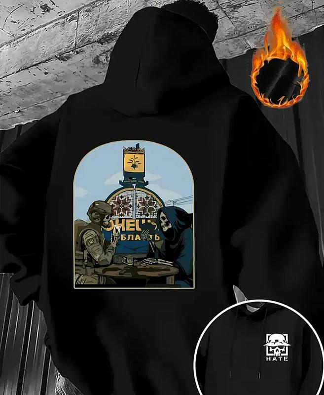 Стильное черное мужское худи с принтом на военную тематику Материал: рьонытка (флис) Размер: М