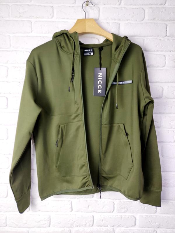 Мужская теплая кофта от бренда Nicce. Кофта теплая, материал типа "софт шелл" Цвет хаки Карманы на молнии. Капюшон с подкладкой, затягивается. Манжеты рукавов и низ имеют эластичную отделку. Размер S замеры: плече 52 рукав 62 ПОГ 54, длина 66