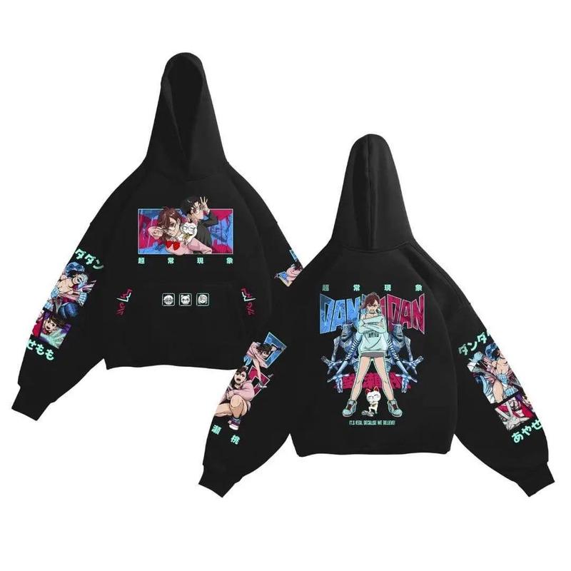 Худі DanDaDan — оверсайз, тепле і стильне! Великі яскраві принти на спині та рукавах роблять образ ефектним і виділяють із натовпу. Ідеально для щоденного носіння та аніме-луків 🖤 Розміри: S–XL ✅