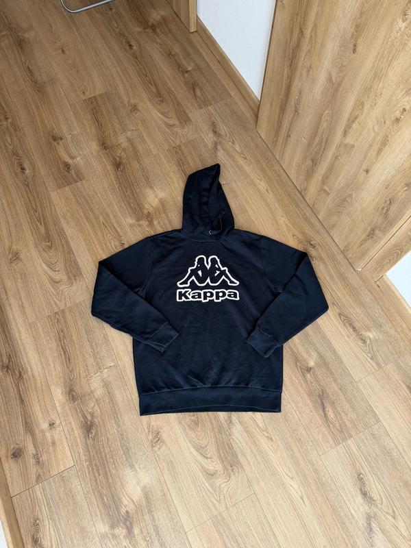 Чоловічий чорний худі з капюшоном та написом 'кафе' (розмір L). Довжина 71 Ширина під руками 60 Плечі 47 Рукав 68