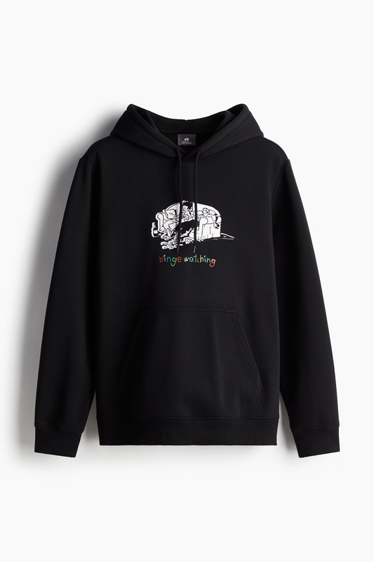 Худи мужское h&m,xl,хлопок,черное,с,капишоном,полиэстер,флис,рисунком,напысом,свободна...