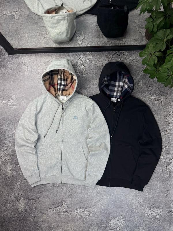ЗІП-ХУДІ BURBERRY CLASSIC Зіп-худі Burberry Classic — базова модель з акцентом на деталі. Капюшон на зав'язках, всередині — контрастна підкладка у стилі Burberry. Мʼяка та щільна бавовна, зручна посадка, кишені кенгуру, еластичні манжети та низ. Розміри: S-XL *. Кольори: чорний, сірий