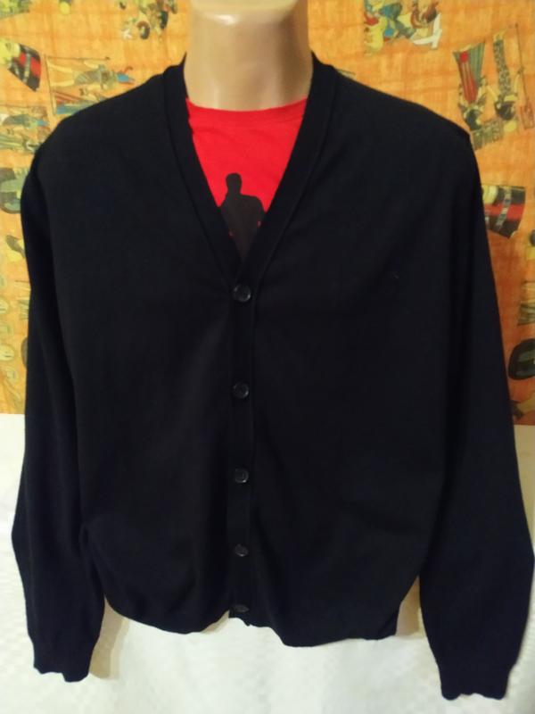 Кардиган Розмір вказано XXL Ширина груді 64 см у вільному стані В'язка не щільна Еластична Тягнеться Колір чорний насичений Стан Нова річ Заміри на останніх фото Орієнтуйтесь на заміри