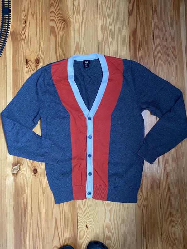 H&M кардиган чоловічий Стильно підібрані кольори. Стан дуже хороший, є невеличкі плямки на білому кольорі від помаранчевого, при носінні не видно, на фото показано.. Розмір М, може підійти і на менші розміри, півобхват 50 см, довжина рукава 62 см, довжина кардигану 64 см). Підписуйтеся на мій акаунт Шафа, часто закидаю оновлення брендових речей 👗👒🧣👢🎒👕🩳👙🧤👟👜👡🥿👠👔👖🧥👚🛍️🎁