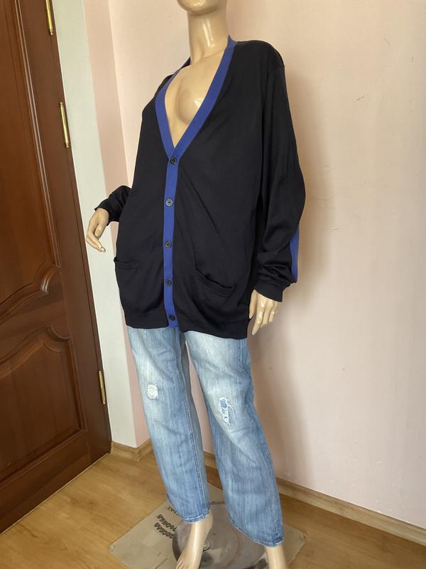 Тонкий качественный кардиган. Идеальный но на спинке есть стрелка. Рекомендую на высокий рост. Замеры груди 60см в бедрах 54-56см длина 81см рукав 76см 7:9:24