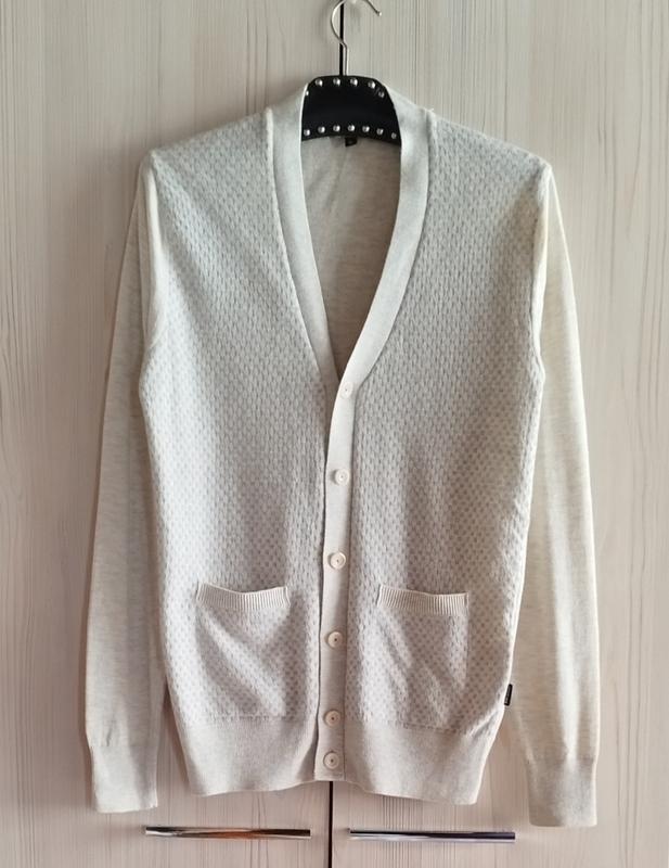 Кардиган з бавовни і кашеміру від Barbour( м'якенький, дуже приємний до тіла).V-образний виріз, довгі рукави і застібка на гудзики. Дві кишені. Розмір S Склад : 85% коттон 15% кашемір Довжина - 68 ПОГ - 47 Плечі - 41 Рукав - 6