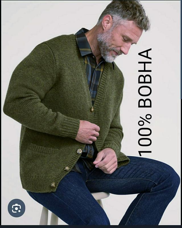 Длина изделия 73, от плеча до плеча 52, длина рукава 61, объем груди 120, объем по низу 80 см. Ткань эластичная. В отличном состоянии мужской кардиган немецкого бренда "elch". Elch Jagd-Sport Bekleidung. Это немецкий бренд, специализирующийся на одежде для охоты и активного отдыха. Слово "WAIDGERECHT" означает "этический" или "соответствующий правилам охоты" честно, на немецком языке. Продукция бренда изготавливается из прочных материалов, таких как шерсть, для обеспечения долговечности и комфорта в полевых условиях. Мужской кардиган классического кроя в темно-зеленом (нахватском) цвете. Изготовлен из 100% чистой новой шерсти (pure new wool), что обеспечивает отличную теплоизоляцию, мягкость и долговечность. Фасон: V-образный вырез, застежка на 5 больших роговых пуговиц, два накладных кармана спереди. Рукава: длинные, с эластичными манжетами и с трикотажной резинкой по нижнему краю. Материал: грубая шерстяная вязка, создающая текстурный "меланжевый" эффект. Производство: Шотландия (натуральная/спортивная одежда). Стиль: Традиционный охотничий/альпийский дизайн, идеально подходит к casual-гардеробу, особенно в холодное время года. Отличный вариант для прогулок на природе, охоты или повседневной носки с рубашкой или водолазкой. Первое фото с сайта.