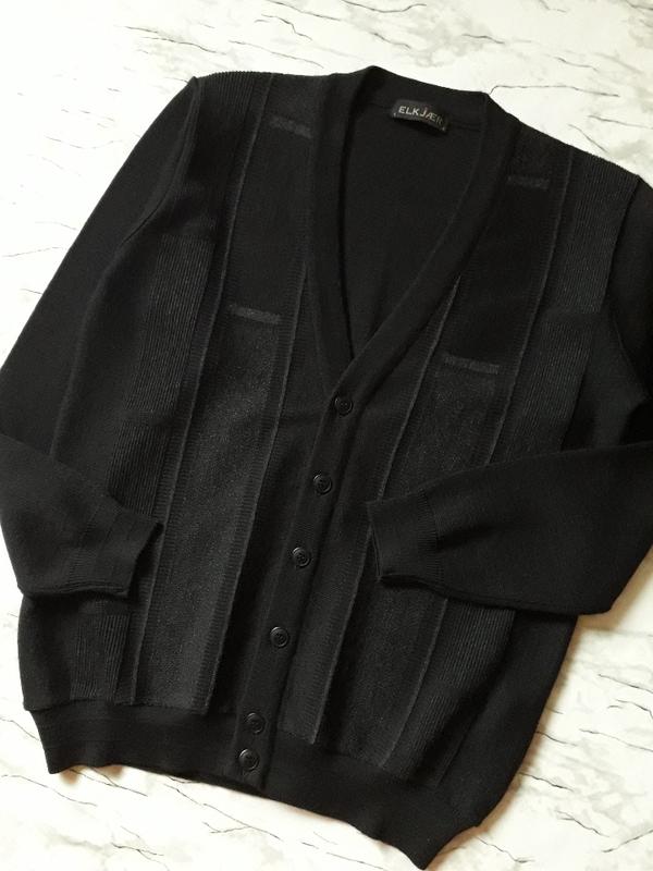 Стильний кардиган данської бренду.Колір чорний,темний сірий,і баклажан( додано нитка в елементи-смуги).Тканина м'яка.Теплий Кардиган,у складі шерсть.У стан нової речі. Дуже добре виглядає. Датський дизайн. Виміри в спокійному стані: Плечі 44 Пог 54 По низу 38 Рукав 61 Висота 67 Шерсть 50% Акрил 50% Обміну та повернення немає!Оплата 100% на карту Приват банку.Всім відмінних покупок!