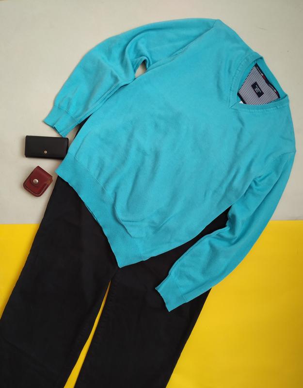Шикарный удлиненный базовый пуловер,цвет бирюзовый, тянется, приятный на ощупь р. L Длина 65см Полуобхват груди 54см Длина рукава от плеча 60см Плечи 45см Стегна 40 см идеальное состояние, почти новое, без дефектов