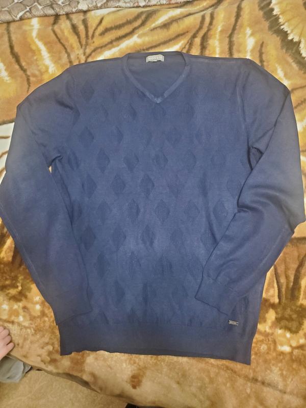 Кофта мужская в нормальном состоянии на самом деле темнее чем на фото и не имеет такого блеска.