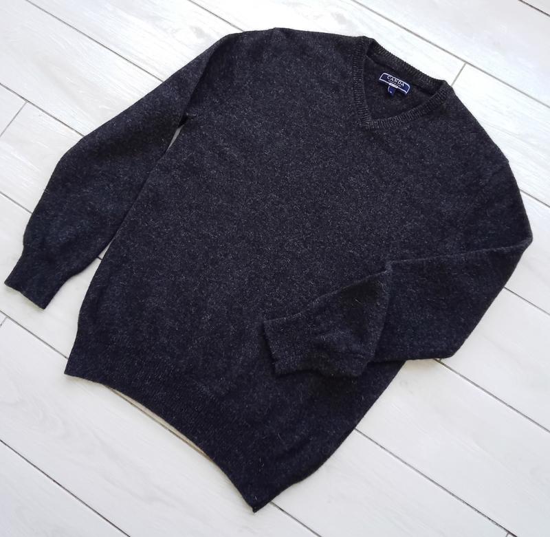 Вовняний пуловер у графітовому кольорі з проділом. 100% вовна, якість підтверджена знаком вулка. Розмір вказаний М, але краще орієнтуватися на заміри. Оптимально порівнювати їх не з вашими мірками, а з параметрами, що ідеально сидить на вас, особистої речі. Параметри: довжина 69 см., НОГ 52 см, у плечах між швами 45 см., довжина рукава від ушивного шва 63 см, по низу ширина 40 см (тягнеться) Стан чудовий. Рекомендую! У нашому магазині є багато інших пропонувань, підписуйтеся, приходьте на оновлення та вибирайте оновлення чудової якості за розумною ціною.
