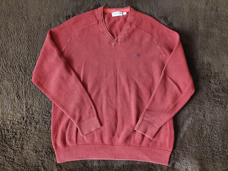 Свитер / пуловер Lacoste. Оригинал. Светло бардового цвета, выделка - тёртый котон. Рукав реглан. Размер указан XXL, чуть маломерит. Между подмышками 59 см Рукав от середины шеи 83 см Длина 66 см