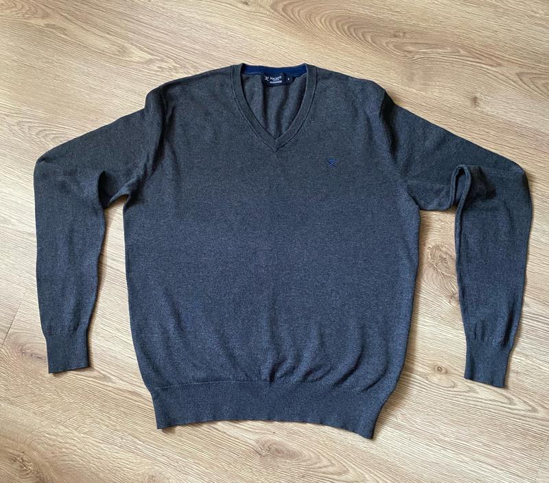 Чоловічий пуловер HACKETT, розмір S. Склад - 70% бавовна, 20% шовк, 10% кашемір. Темно-сірий. Стан ідеальний без нюансів. Додаткові заміри за вимогою.